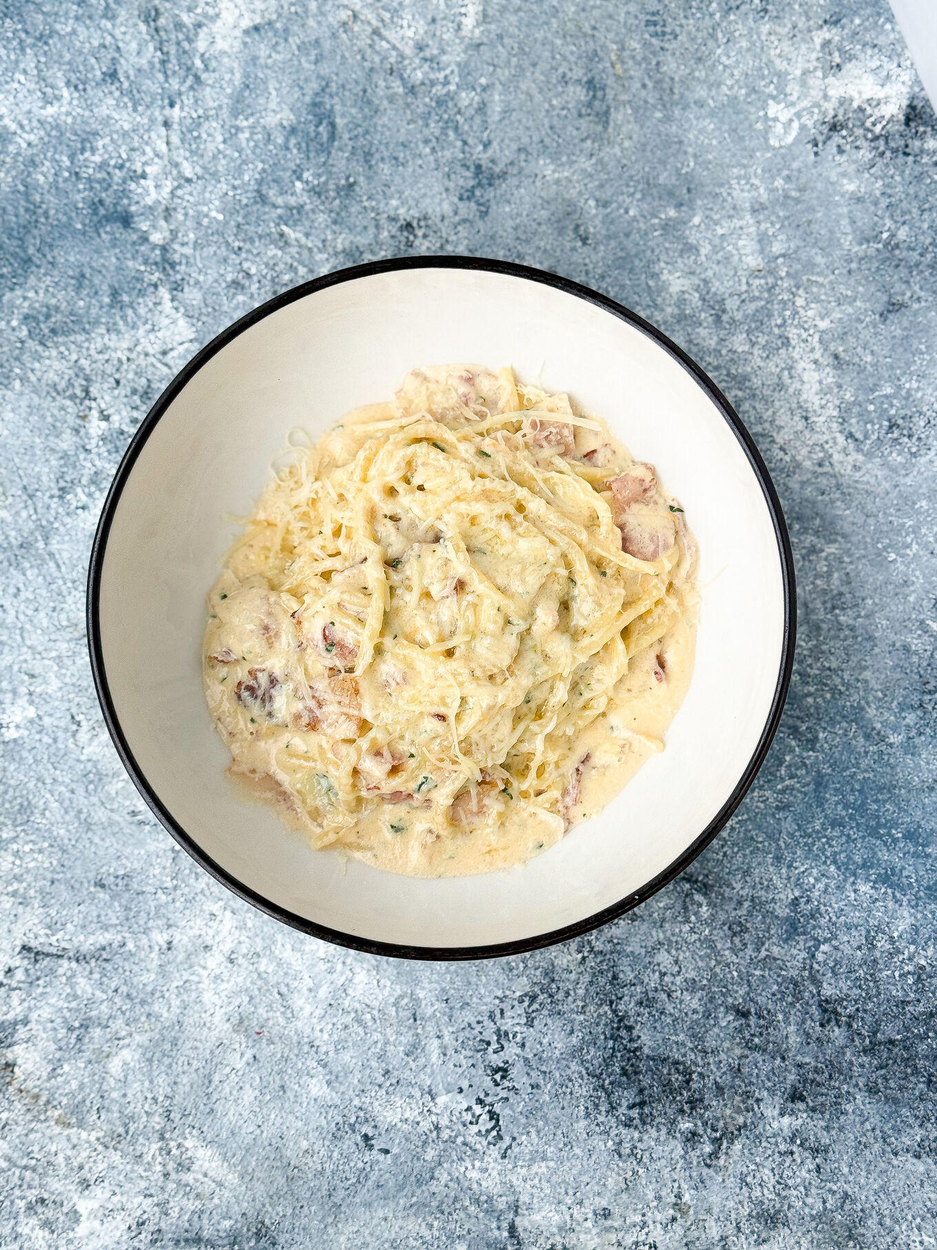 Состав: Сливки, бекон, макароны, яйцо куриное, сыр Пармезан, зелень петрушки