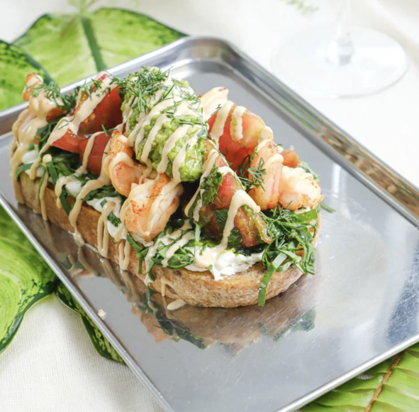 Состав: тартин (крем чиз(сыр креметте,сливки 33%), креветка тигровая, масло растительное, соль, шпинат, томат розовый, соль, сахар, крем бальзамик, чимичури - (петрушка, масло растительное, чеснок,соль,) мята,п етрушка, базилик свежий,соус устричный( креметте сыр, соус устричный),укроп,соус гуакамоле(авокадо, чимичури, соль, сахар, оливковое масло, тыквеные семечки, сок лимона),масло сливочное,петрушка.