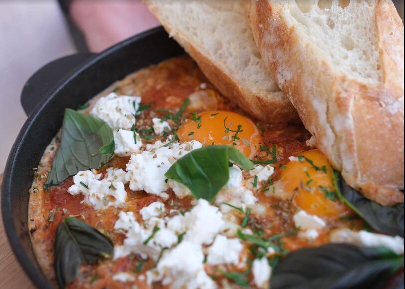 Шакшука с брынзой и фоккачей