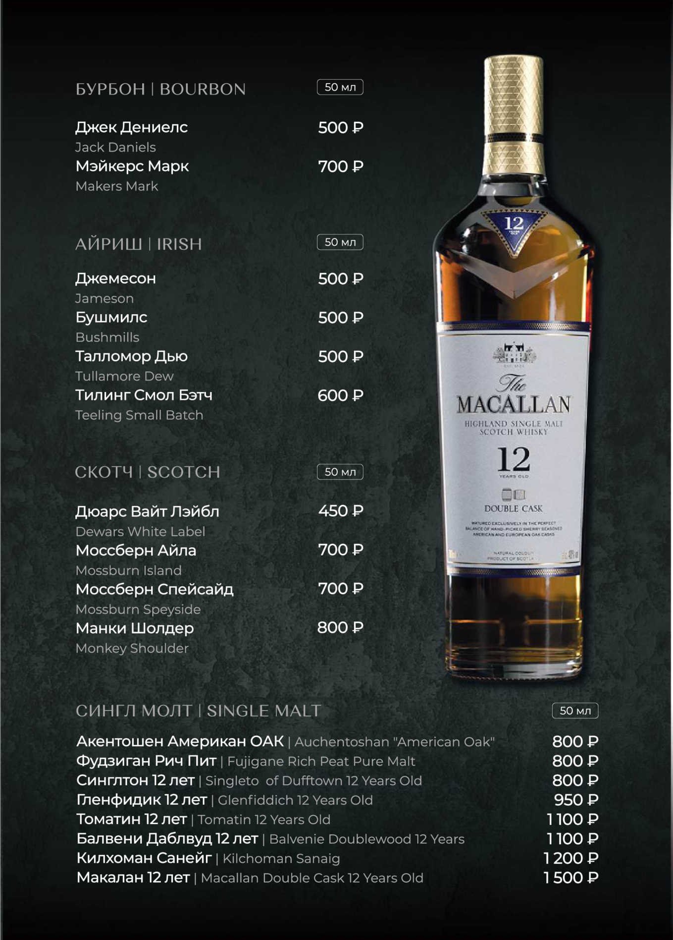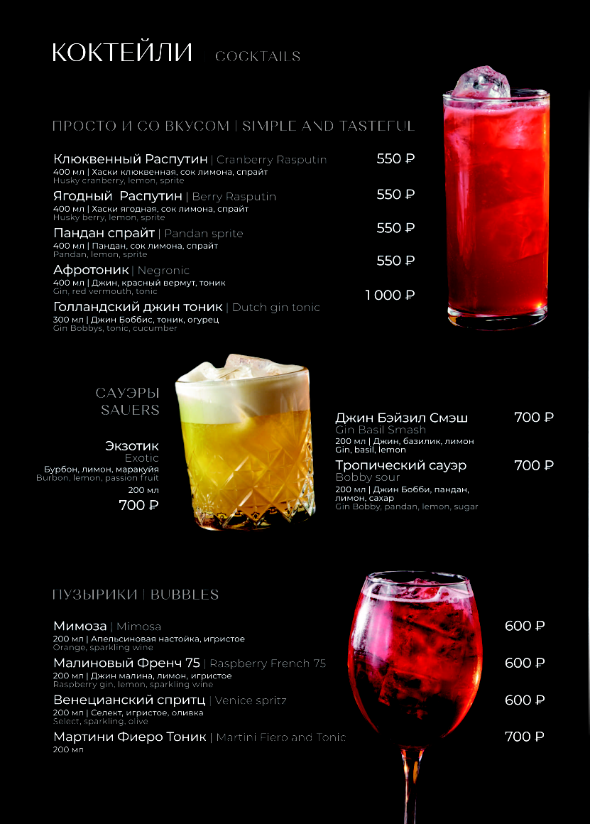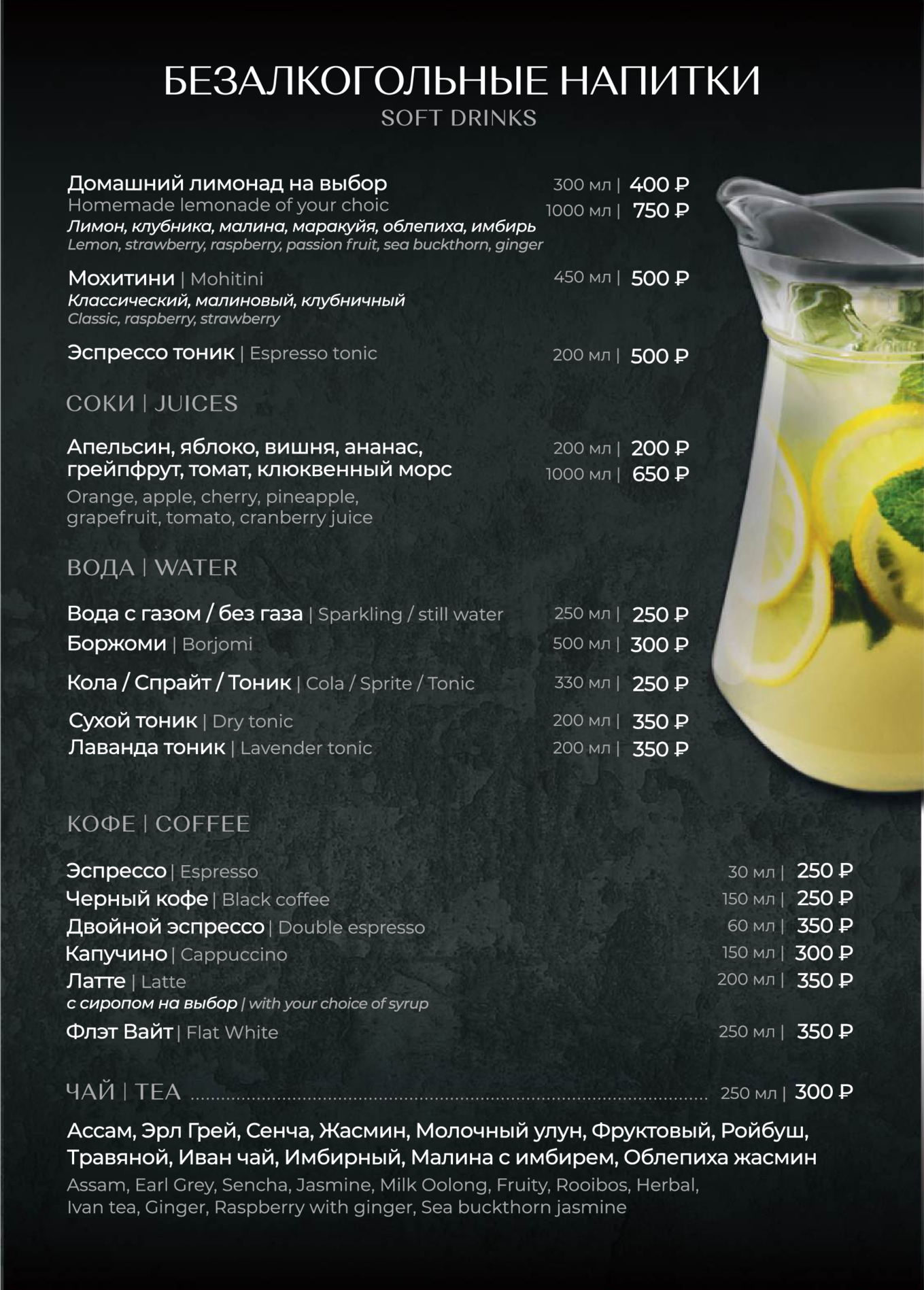 Для получения полной информации о напитках, указанных в меню, а также в случае предрасположенности к пищевой аллергии, пожалуйста, обратитесь к вашему официанту