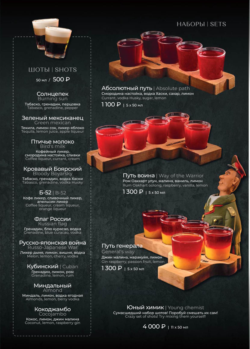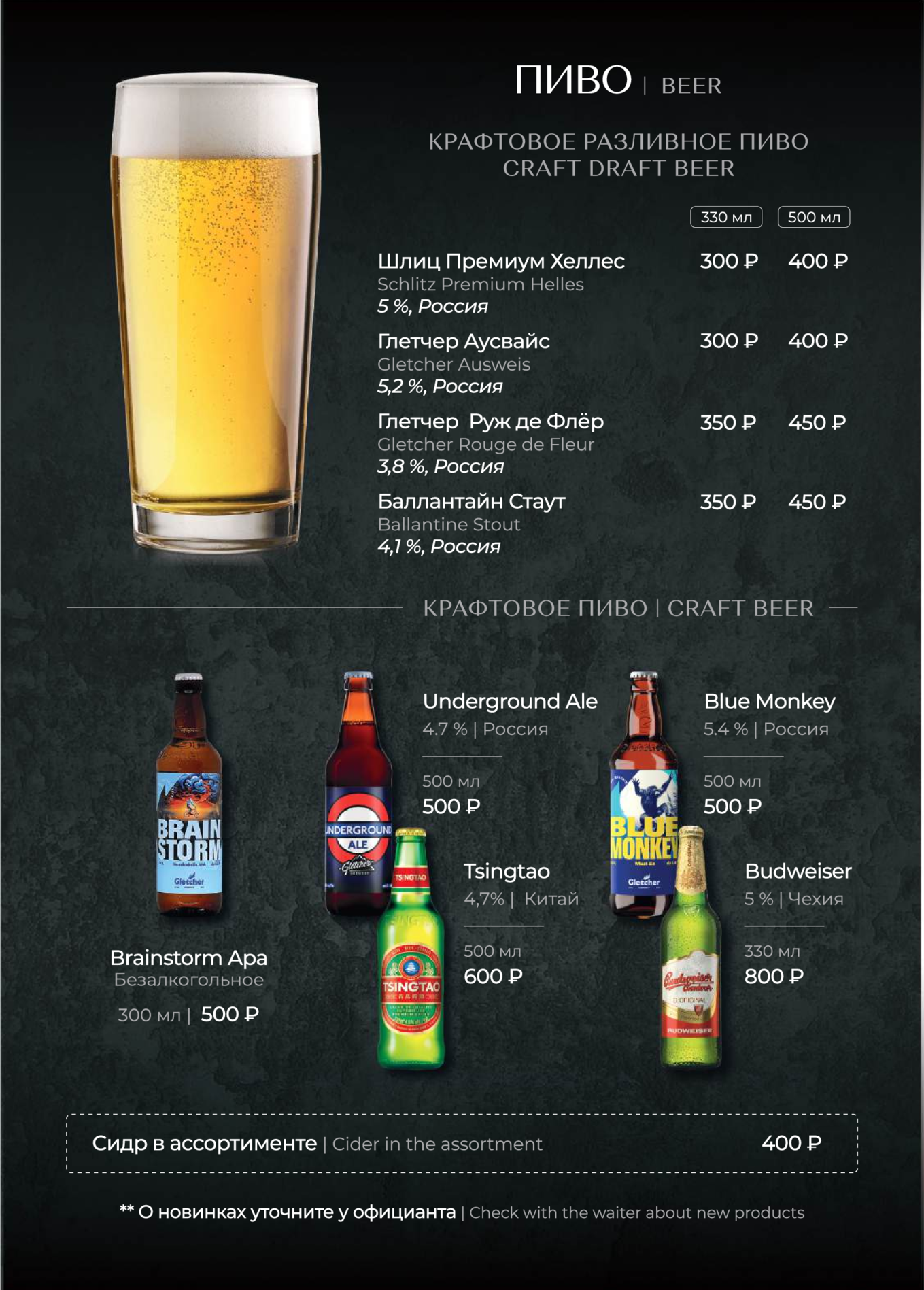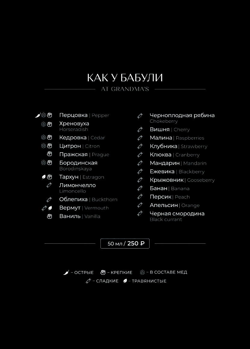 Для получения полной информации о напитках, указанных в меню, а также в случае предрасположенности к пищевой аллергии, пожалуйста, обратитесь к вашему официанту