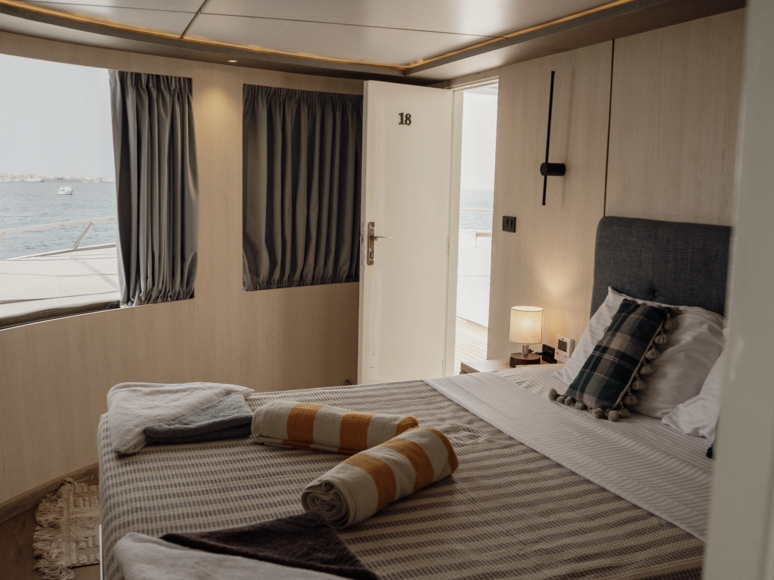 Самая большая каюта на яхте с видом на море. Расположена на самой верхней палубе