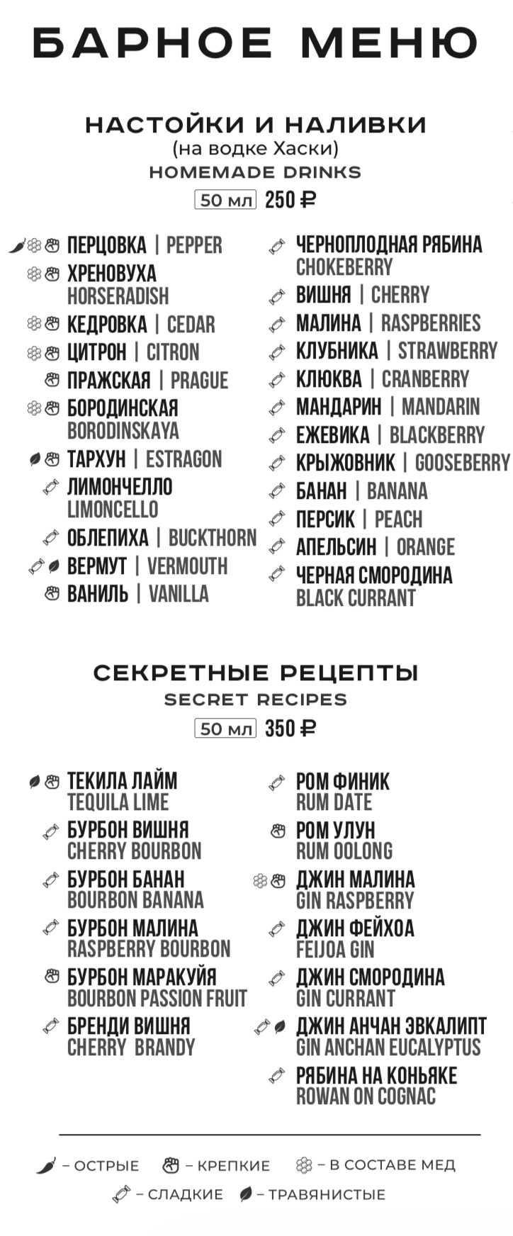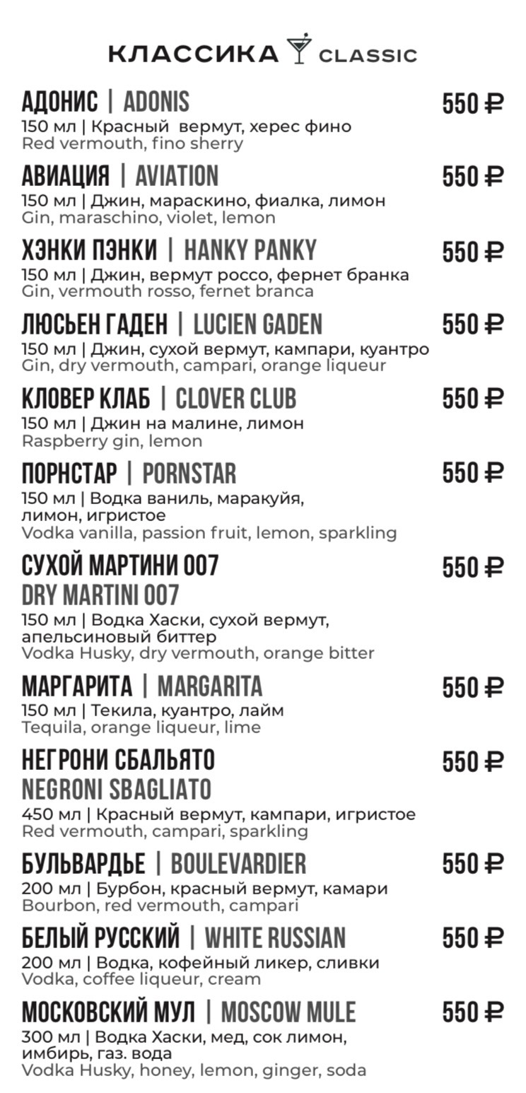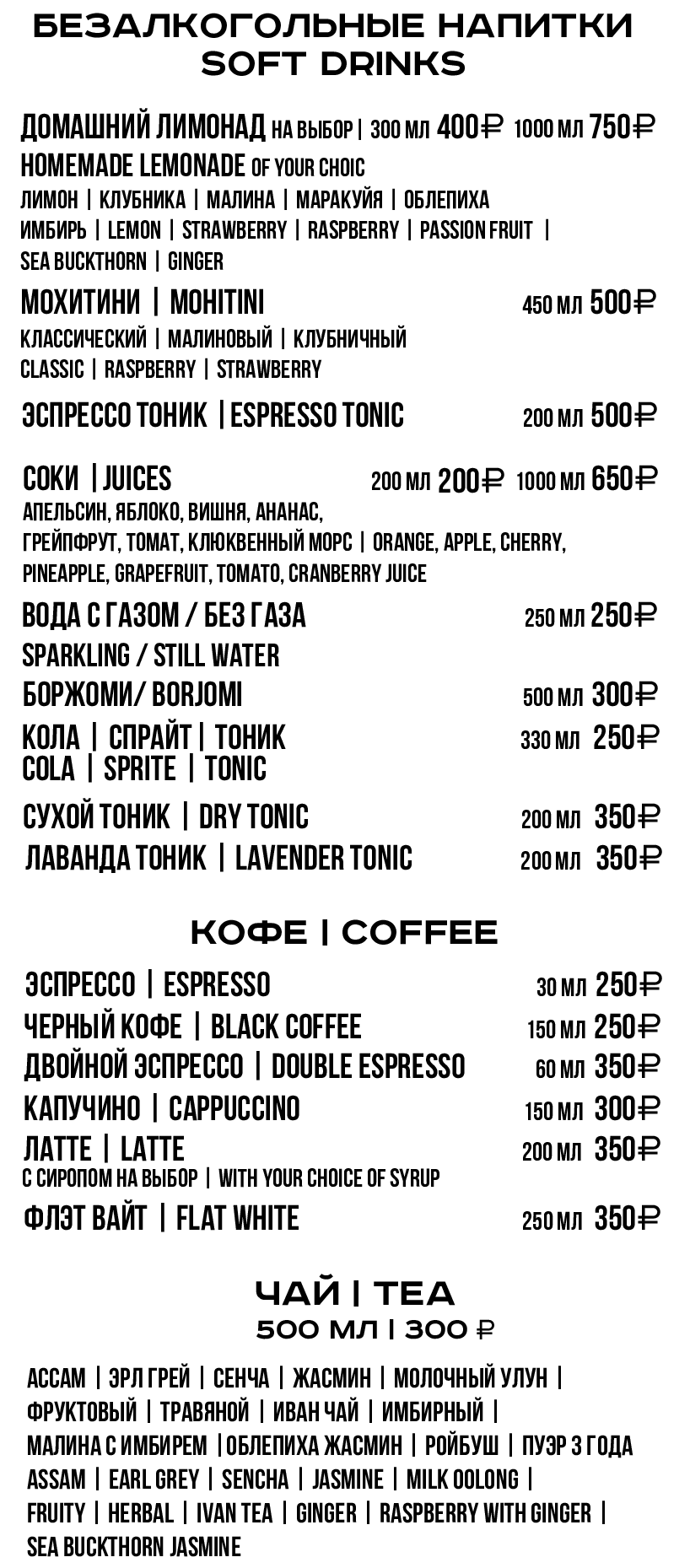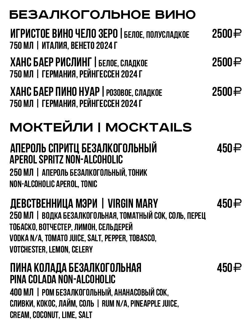 Для получения полной информации о напитках, указанных в меню, а также в случае предрасположенности к пищевой аллергии, просьба обратиться к вашему официанту.