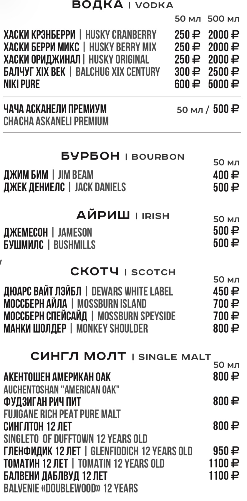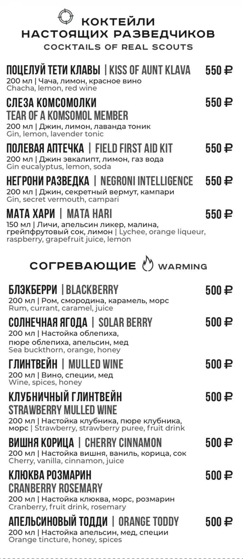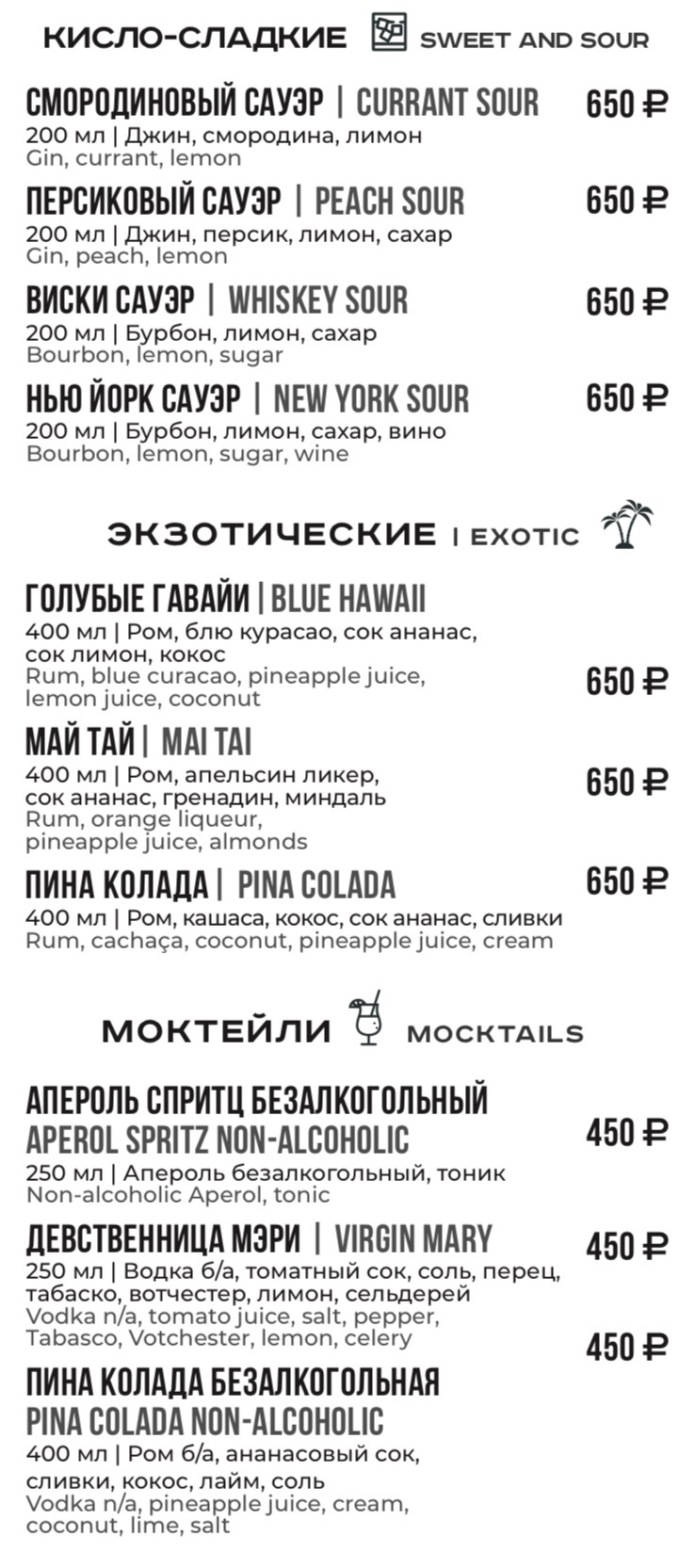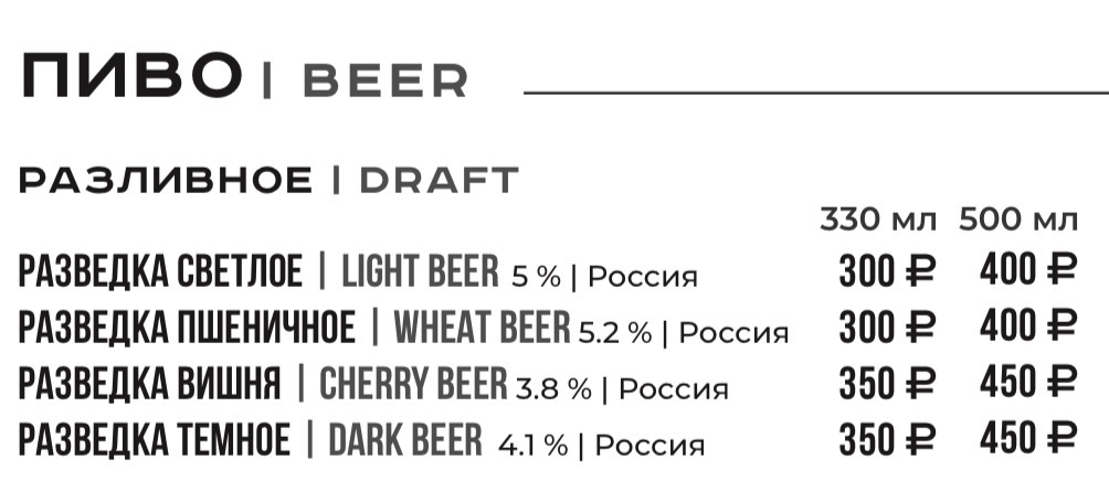 Для получения полной информации о напитках, указанных в меню, а также в случае предрасположенности к пищевой аллергии, просьба обратиться к вашему официанту.