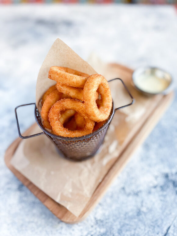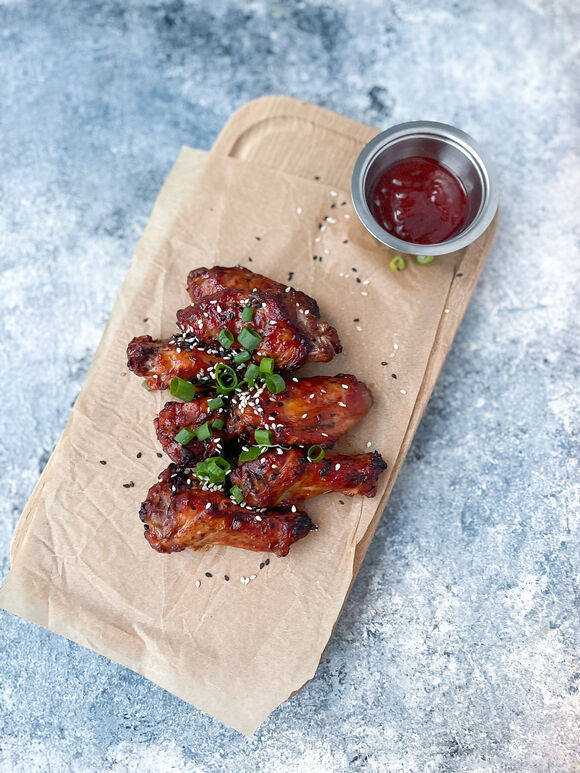 Крылья Барбекю, чесночные гренки, сырные палочки, батат фри, картофельные дольки, луковые кольца 1300 г